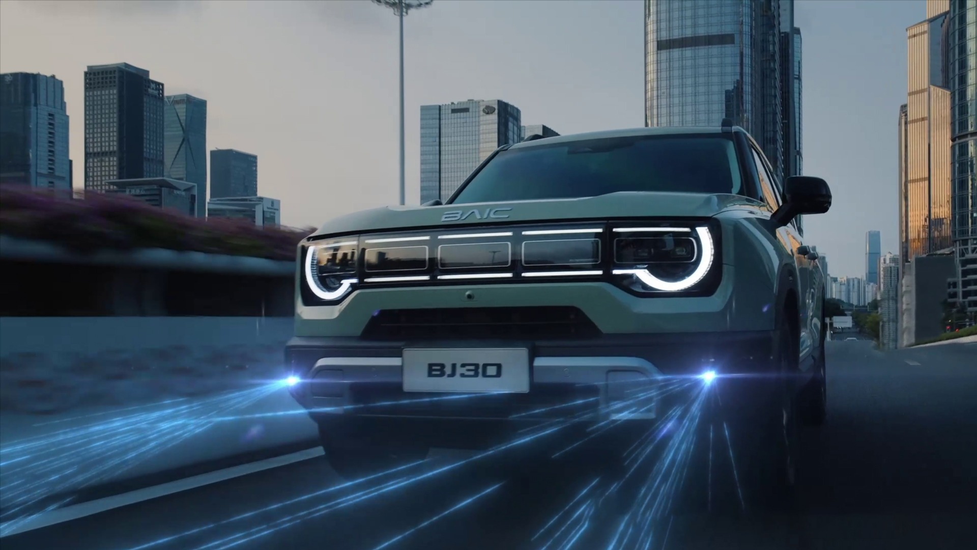 La franja de refuerzo robusta resalta el estilo robusto del BJ30. El parachoques delantero resalta un estilo todoterreno.